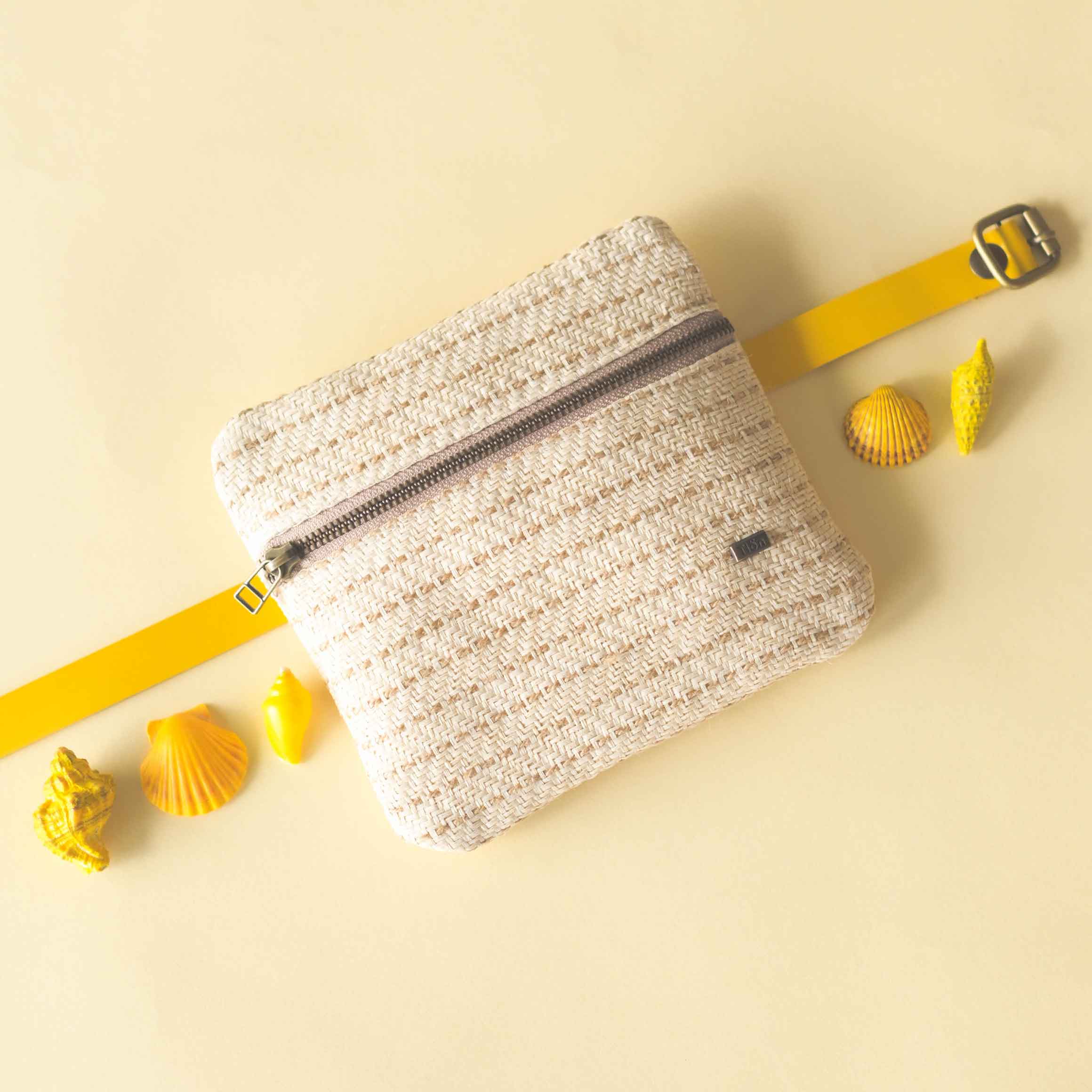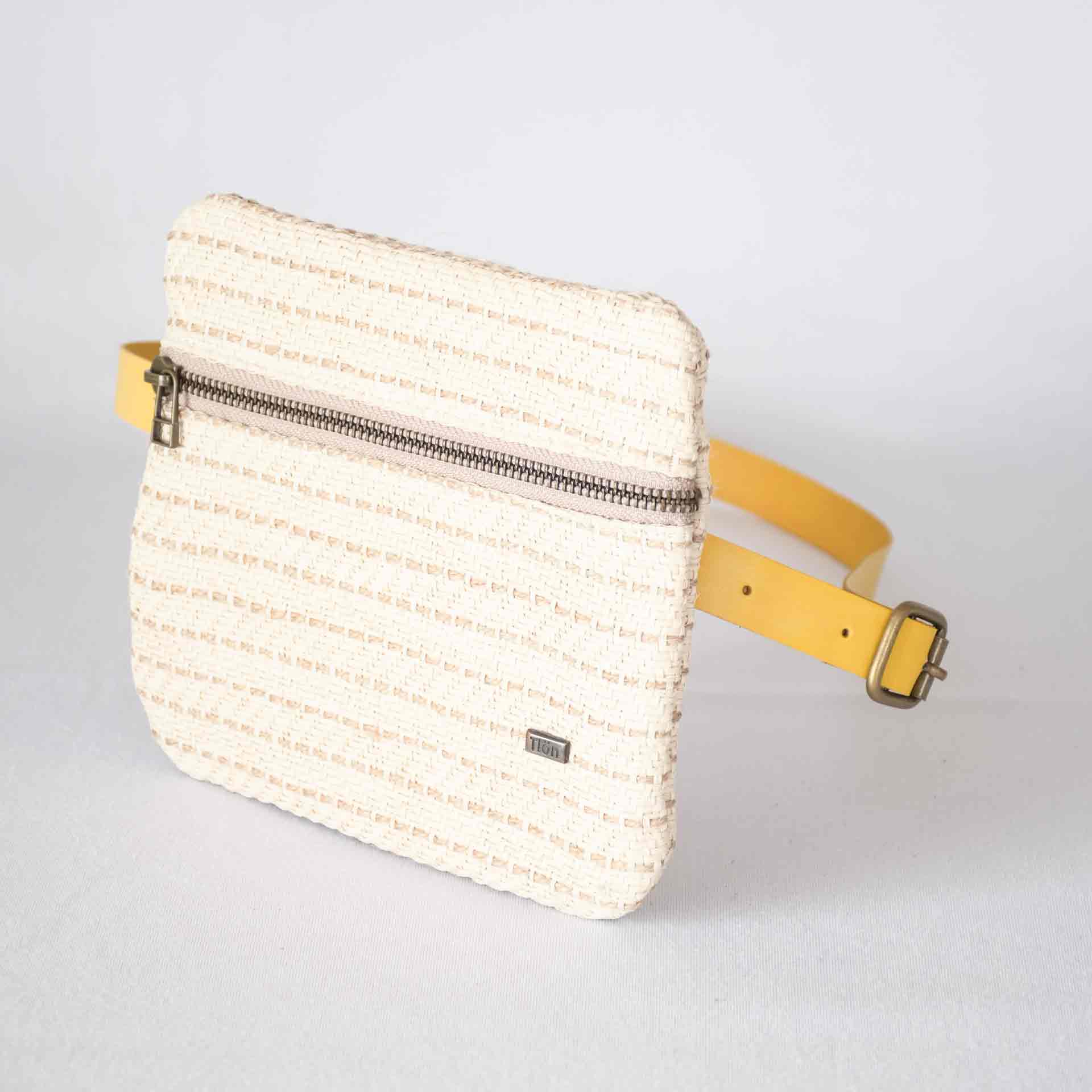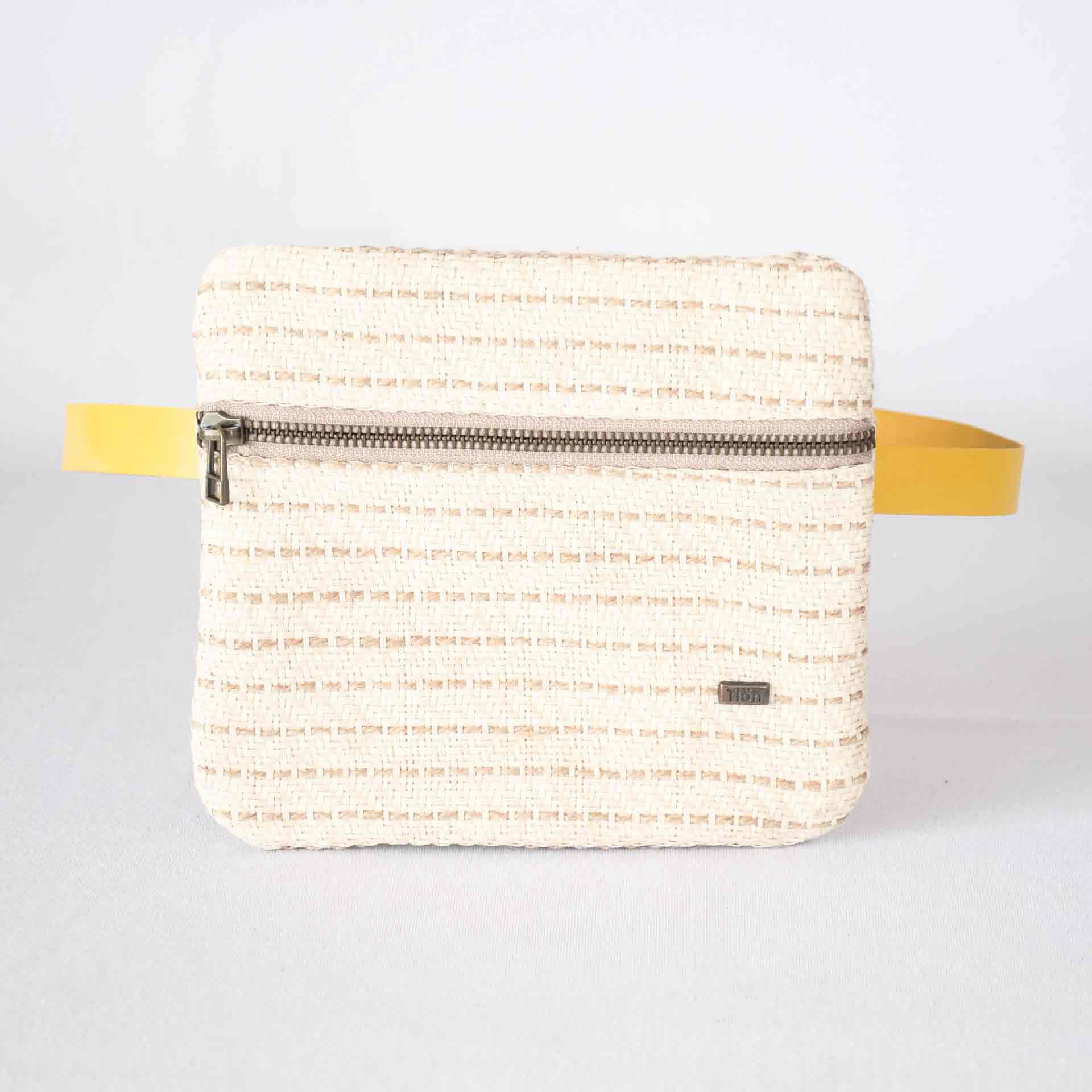 Tlön Bumbag. Raffia and 100% cotton lining. Adjustable natural leather body strap. For those just-in-case necessities.