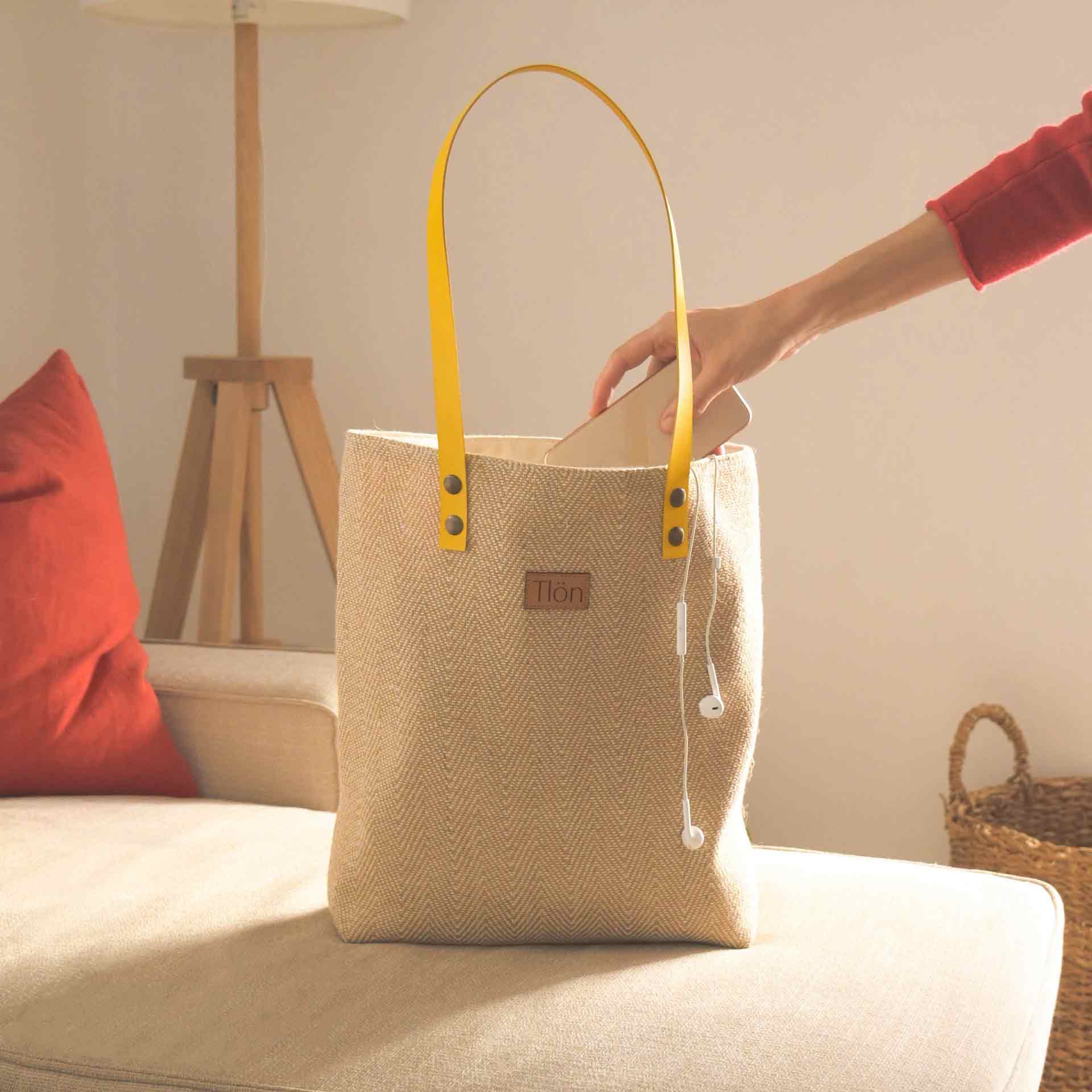 TLÖN totebag design. Jute and organic cotton fabrics.